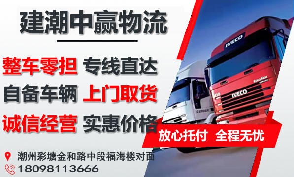 潮州到襄阳物流专线是建潮中赢物流主营重点物流线路之一,提供4.2-17.5米整车包车运输,零担专线,可上门取货,量大免费提送货;潮州到襄阳货运专线价格实惠,欢迎来电咨询。